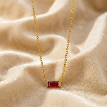 A celebration of color, meaning, and minimalism. The Luvia Baguette features a sleek rectangular-cut birthstone set in a polished gold bezel, designed to capture the light and your story. Available in all 12 birthstones, each piece adds a subtle yet personal touch—whether it's your birth month, a loved one’s, or a stone that simply speaks to you.