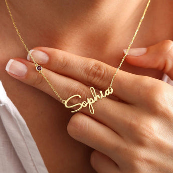 The Mémoire Birthstone Name Necklace is an intentional, minimalist piece designed to be a vessel for unspoken love and a constant, comforting reminder. Thoughtfully customized with a meaningful name and a sparkling birthstone, it’s a piece you can wear to celebrate your own story; or gift to someone you love, so they can carry yours close to their heart. Its lasting, quiet luxury is made for daily wear, keeping life’s most cherished connections beautifully near, every single day.