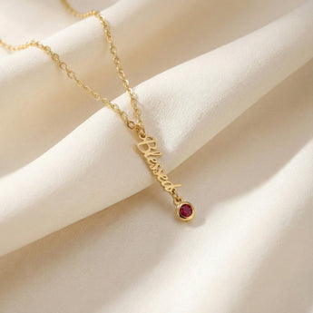 A sleek vertical drop personalized with up to nine characters. Whether that's your name, Mama, Hope, or whatever truth you need close to your heart. At the base, up to 12 birthstones anchor your message with the people or moments that matter most.