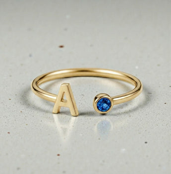 The Aveline Initial Birthstone Ring is a graceful symbol of love and intention. Crafted in gold or silver, this dainty adjustable piece pairs your chosen birthstone with a meaningful initial—making it a heartfelt keepsake for yourself or someone you cherish.