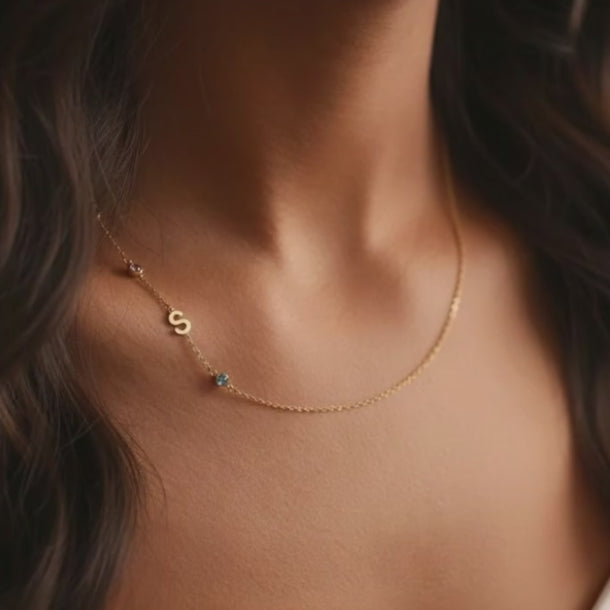 A timeless twist on personalization, this dainty sideways initial and birthstone necklace blends modern minimalism with heartfelt meaning.